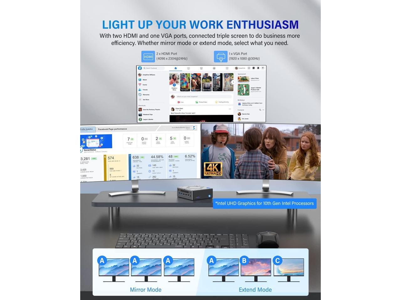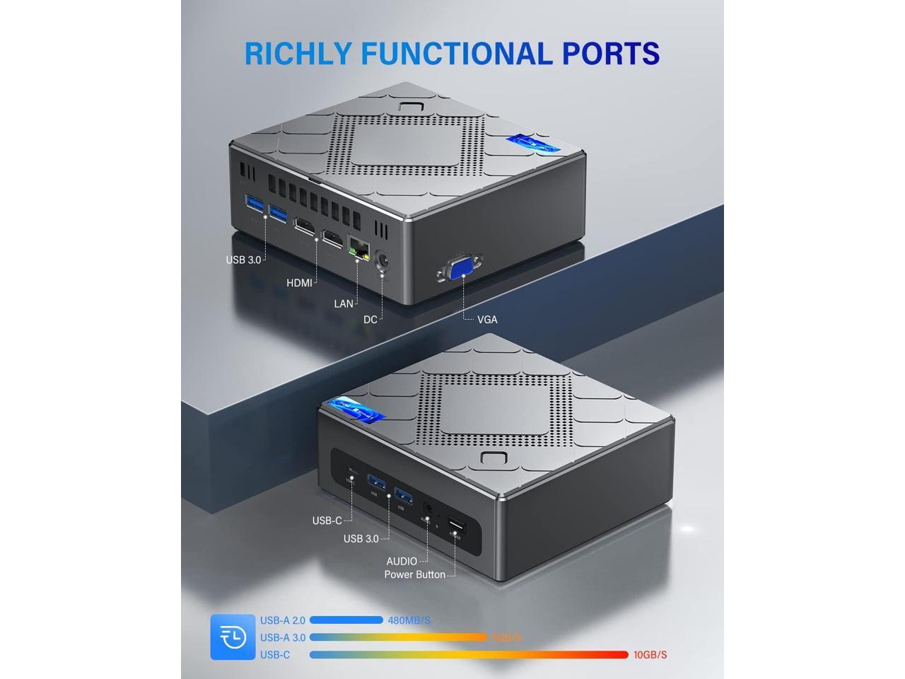 CK10 Mini PC 16GB RAM, Intel Core i7-10710U(up to 4.7GHz) Mini Computer Windows 11 Pro, Six-Core Small Desktop Computers Tower Support Triple Display 4K, NVME SATA SSD,USB 3.0,Type C,LAN, HTPC