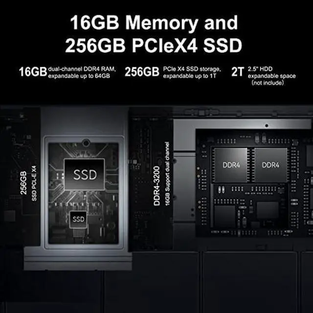 Storage Expansion Option - Intel NUC i5 has built-in 16GB DDR4 RAM, 256GB PCleX4 SSD (Support up to 1TB of 2.5-inch PCleX4 Gen4 SSD and M.2 SATA, not included) that take storage and performance to the next level