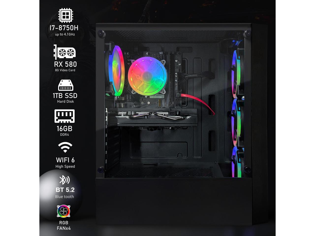 STGAubron Gaming PC Computer Desktop, Radeon RX 580 8G, Intel Core I7 8th up to 4.1GHz, 16G DDR4, 1T SSD, WiFi6, BT 5.2, RGB Fan x4, Windows 11 Home