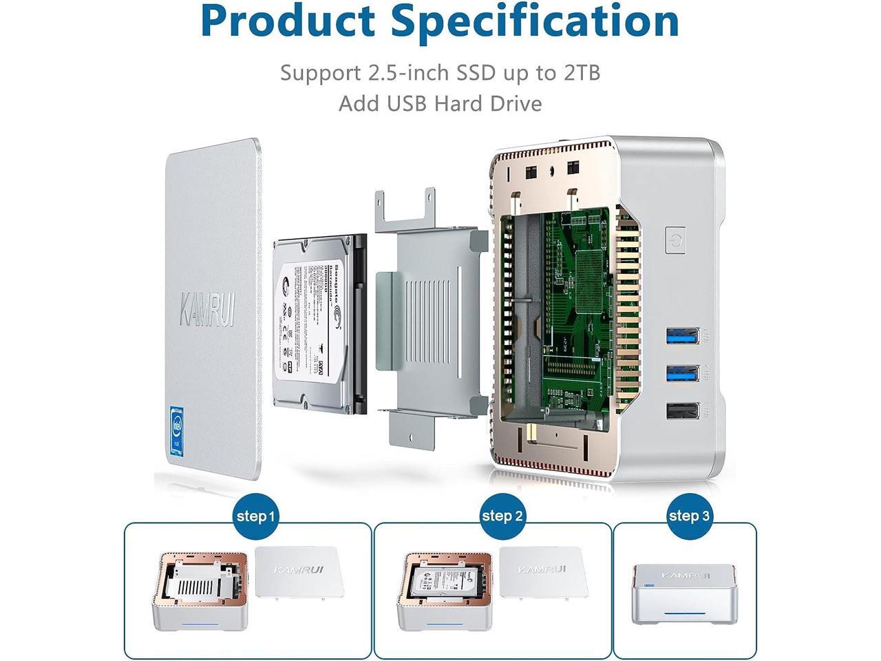 - Ultra High-efficiency Processor+Built-in Fan KAMRUI mini pc equipped with Intel Celeron J4125 processor 4 quad core, Its base operating frequency 2.0 GHz/s up to a 2.7 GHz in burst mode. Faster CPU can meet your different needs such as work, browse webs, home-learning, The built-in fan in mini cpu efficiently dissipates heat and has no noise, giving you a quiet and comfortable experience