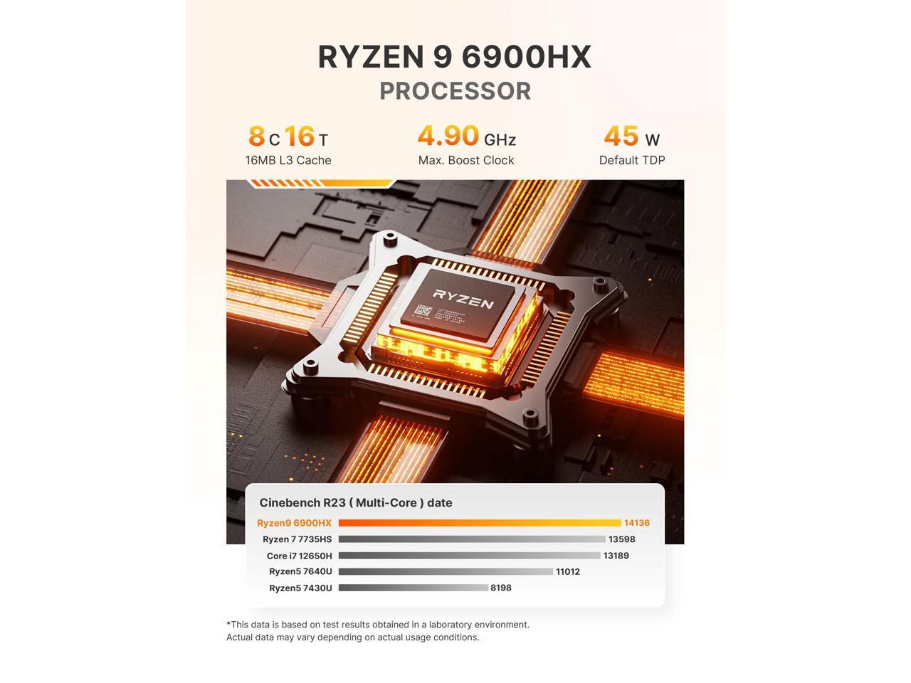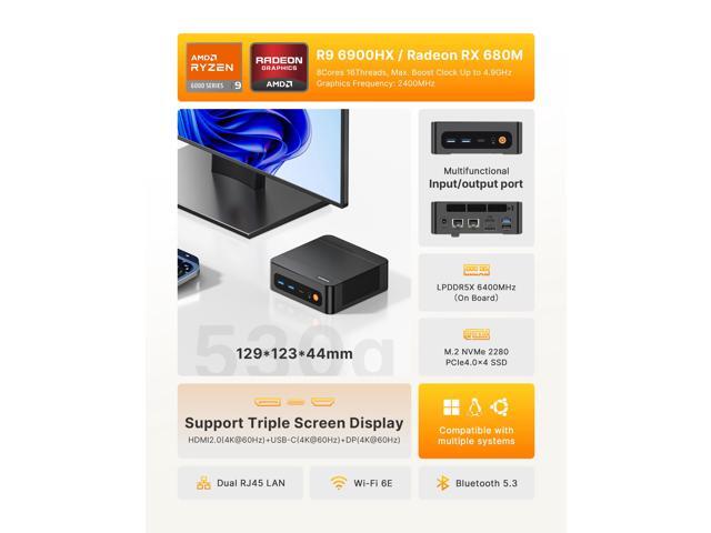 - Powerful Ryzen 9 6900HX Mini PC- Bosgame mini pc P6 comes with AMD Ryzen 9 6900HX Processor, it has 8 cores and 16 threads, the boost clock is 4.9GHz.With Zen 3+ architecture, the mini computer can handle heavy computing tasks smoothly and is better suited for multitasking