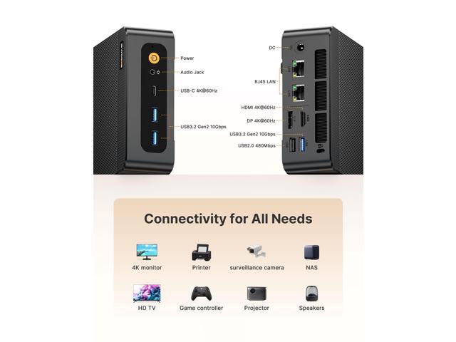 - Support 4K Triple Display - The Type-C port has a rate of up to 10Gbps, allowing for charging and driving multiple monitors. Combined with HDMI and DP ports, the Bosgame mini desktop PC lets you take your productivity to the next level on up to Triple 4K displays!