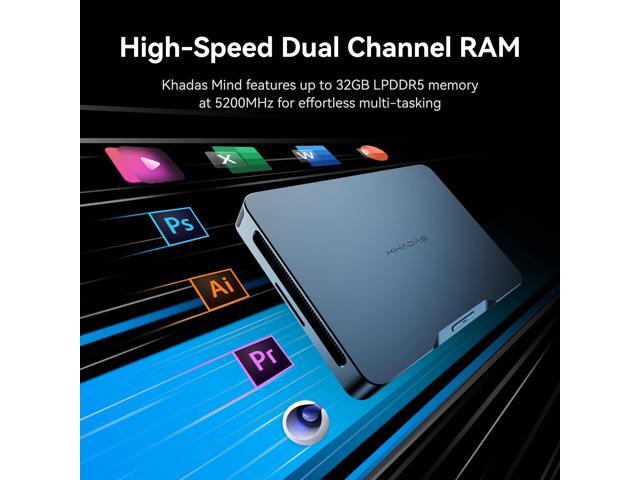- Processor: The Khadas Mind 1 Mini Computer features the latest 13th Gen Intel Core i7-1360P, which has a 12-core CPU (4 performance cores and 8 efficiency cores) with a maximum turbo frequency of 5.0GHz and 18MB cache.