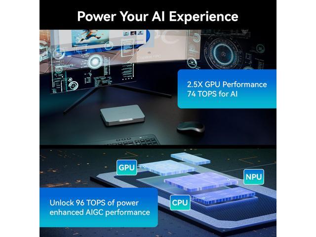 - 1. Intel® Core Ultra (Series 2): Newer and faster AI processor, total computing power: 96 TOPS(GPU: 74 TOPS), Intel Arc 140T GPU, 2.25GHz dynamic frequency.