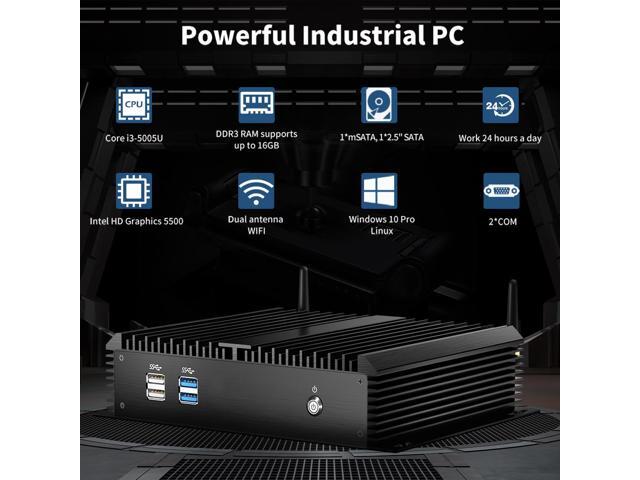 - [Powerful Industrial Mini PC] Mini industrial pc equipped Intel i3-5005U, 2 Cores 4 Threads, Base Frequency: 2GHz, 3 MB Cache. Pre-installed Windows 10 pro (64 Bit). The Processor Graphics Intel HD Graphics 5500