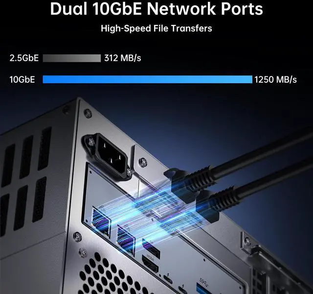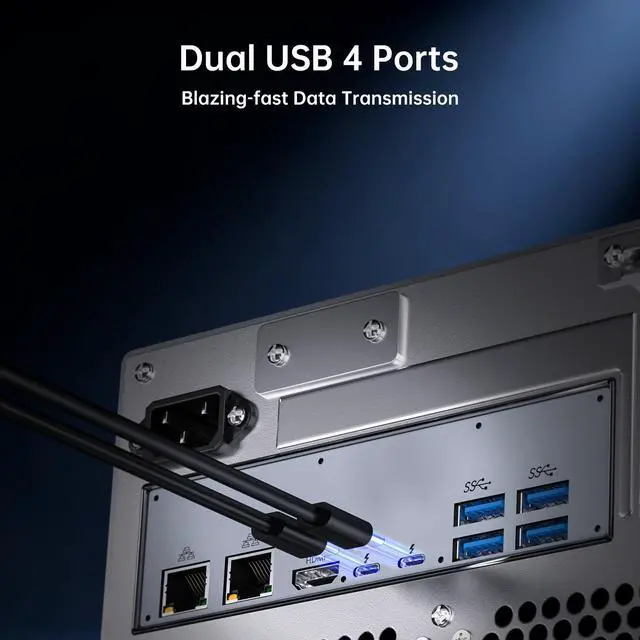 The BOESIIPC 8-Bay NAS Desktop PC is engineered for high-performance storage and enterprise-grade computing. Powered by the Ultra 9 285H 16-core processor (up to 5.4GHz) and 32GB of 8400MHz LPDDR5X RAM, this system ensures rapid data access and seamless multitasking. Its dual M.2 SSD design allows for SSD caching or independent storage pools, enhancing flexibility and speed.