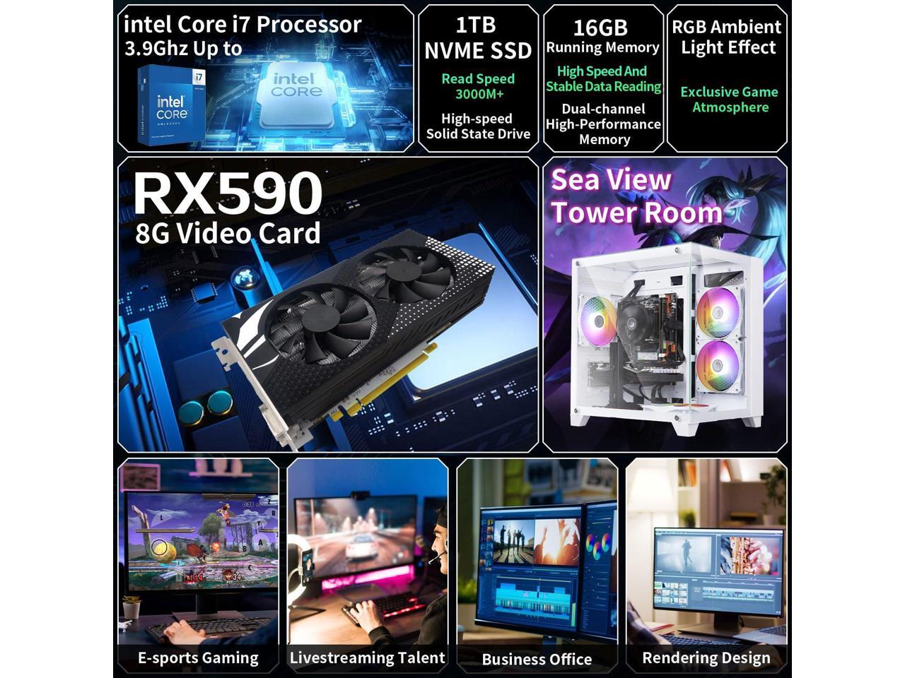 Prebuilt Gaming PC Desktop Computer,Intel Core i7 Desktop,Operating at A Frequency of 3.4-3.9 GHz,RX590 Graphics Card with 8GB GDDR5 Video Memory,16GB RAM,512GB SSD,WiFi 5.0,RGB Fan x4