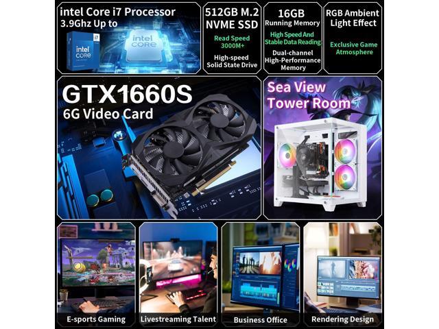 Gaming PC Desktop Computer,Intel Core i7 Desktop,Operating at A Frequency of 3.4GHz,GTX1660Super Graphics Card with 6GB GDDR6 Video Memory,16GB RAM, 512GB SSD,WiFi 5.0,RGB Fan x4,White