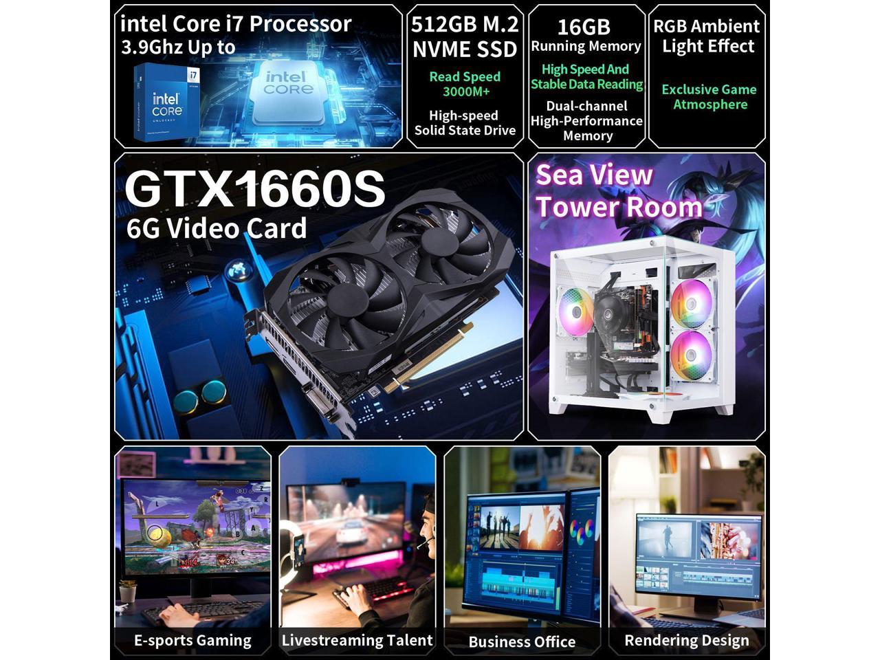This Desktop Tower Gaming PC Computer Has An Intel Core i7 Processor At Up To 3.9GHz | 16GB of RAM | 512GB High-speed SSD | Genuine Windows 11 Home 64-Bit
