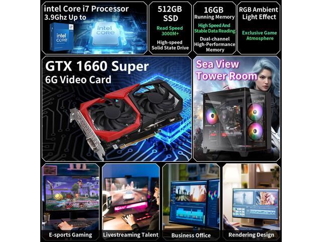 Gaming PC Desktop Computer,Intel Core i7 Desktop,Operating at A Frequency of 3.4GHz,GTX1660Super Graphics Card with 6GB GDDR6 Video Memory,16GB RAM, 512GB SSD,WiFi 5.0,RGB Fan x4