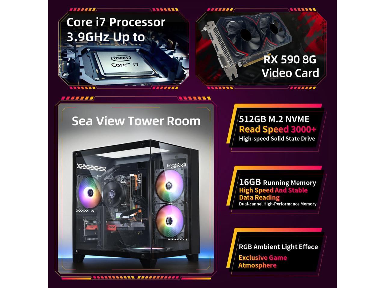Prebuilt Gaming PC Desktop Computer,Intel Core i7 Desktop,Operating at A Frequency of 3.4-3.9 GHz,RX590 Graphics Card with 8GB GDDR5 Video Memory,16GB RAM, 512GB SSD,WiFi 5.0,RGB Fan x5