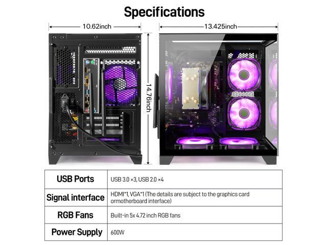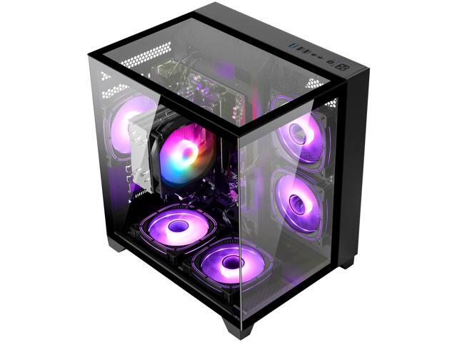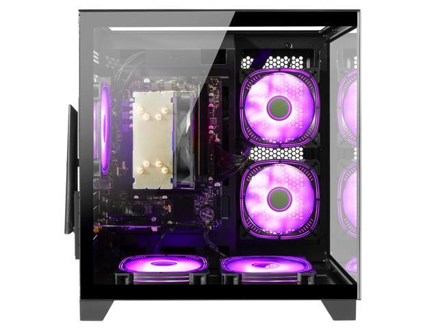 - Design: The panoramic tempered glass chassis (seamless "fish tank" design) with RGB lighting fans creates a personalized gaming vibe, showcasing your hardware while maintaining optimal airflow for sustained cooling performance.