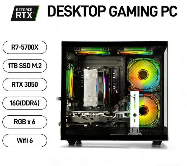 Experience elevated performance with this upgraded LXZ Gaming PC. It combines the powerful AMD Ryzen 7 5700X 8-core processor with the feature-rich NVIDIA GeForce RTX 3050 (8GB), delivering exceptional 1080p gaming. Unlock stunning visuals with ray tracing and boost performance with NVIDIA DLSS technology.