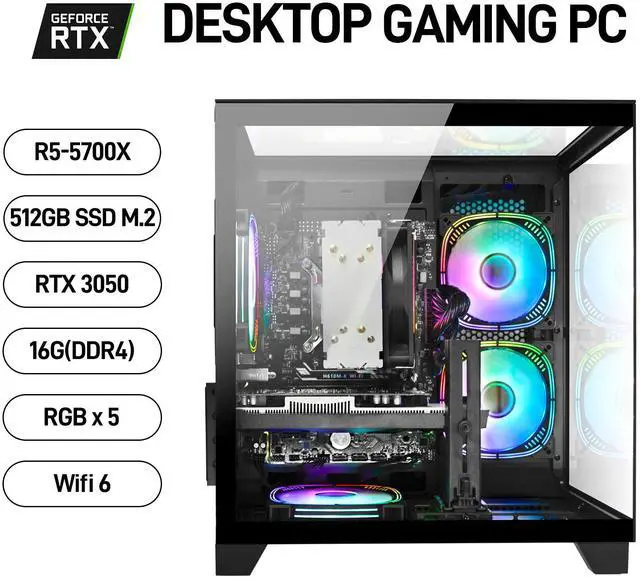 Jump straight into high-performance gaming with the LXZ Gaming PC Desktop. This prebuilt tower combines a powerful AMD Ryzen 5 5500 6-core processor with a Radeon RX 6500 XT 4GB graphics card, delivering smooth frame rates for esports and popular games at 1080p.