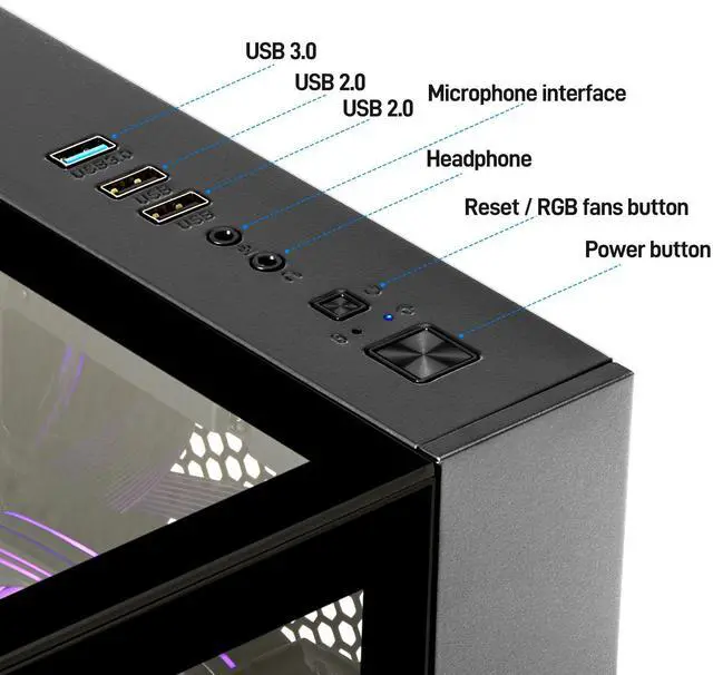 Showcase Design: The dual-panel glass case offers a panoramic view of your components in a clean, modern build.