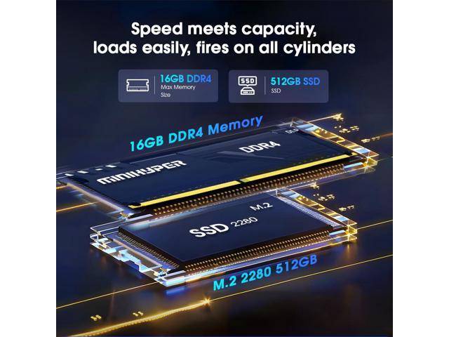 - Large Storage and Efficient Operation 16GB DDR4 RAM & 512GB SSD Storage - High speed 16GB DDR4 RAM ensures seamless multitasking, while the 512GB SSD delivers ultra-fast boot-ups, VESA installation saves space and can be installed on the wall or monitor. Easily switch back and forth between more applicationsquick file transfers, and ample storage for apps, documents, and media. If you want to purchase an efficient mini pc at a favorable price, then we are the best choice