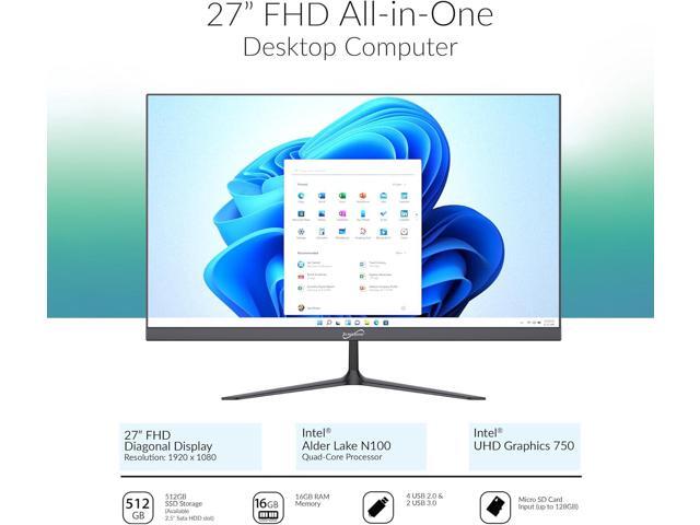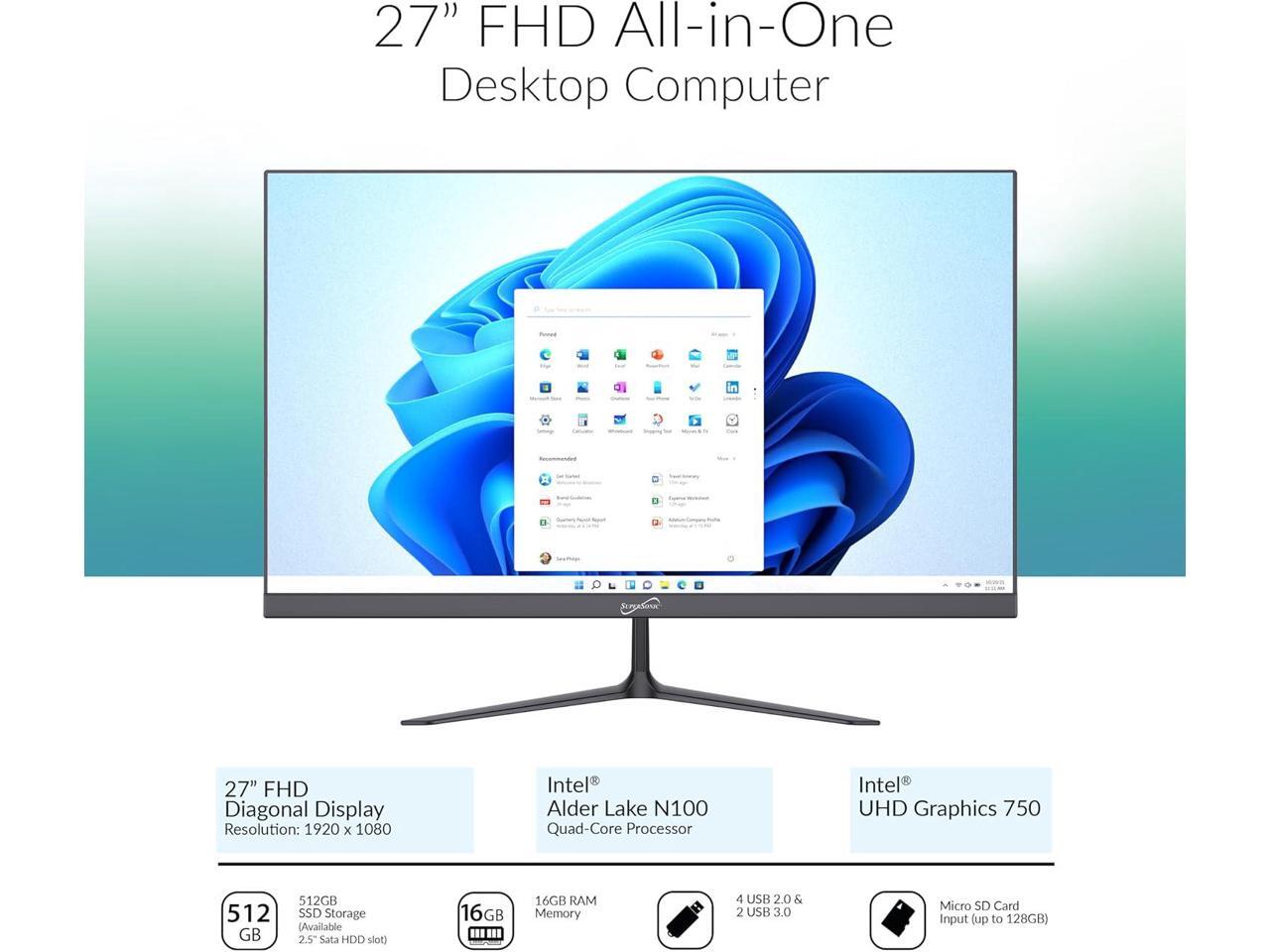 Supersonic SC-5527AIO 27" All-in-One Desktop Computer PC, Intel N100, 16GB RAM, 512GB SSD, Windows 11, Office 365