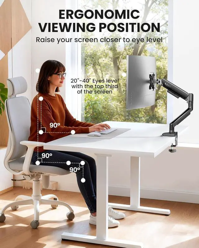 Streamlined Finish with Cable Management: The upgraded cable clips open easily with no tools required, making cable organization faster and more convenient. This monitor arm lifts your screen to free up desk space while keeping cables tidy, helping you stay focused and productive in a clean, clutter-free workspace.