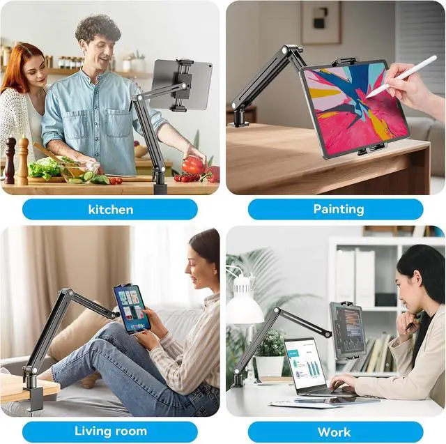 Flexible Adjustment: Featuring two side wrenches, this ipad arm mount allows multi-angle and height adjustments, the tablet mount can enhancing daily work efficiency and usage comfort.