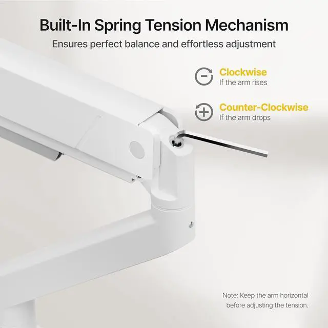Constructed to Endure: Crafted with high-grade aluminum, these monitor arms blends robust build with reliable precision mechanicsengineered for consistent performance and lasting strength. It delivers stable, controlled adjustments without wear or tension loss, while the single monitor mount' s precision system ensures smooth movement with every adjustment, keeping your screen secure through years of use.