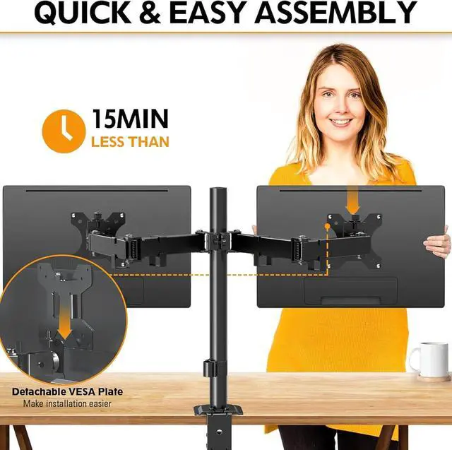 Friendly Customer Service: Do not hesitate to relate with us for any pre-purchase or installation questions. We are confident in our dual monitor arm' s construction, strength, and durability, which provides 3-year support.