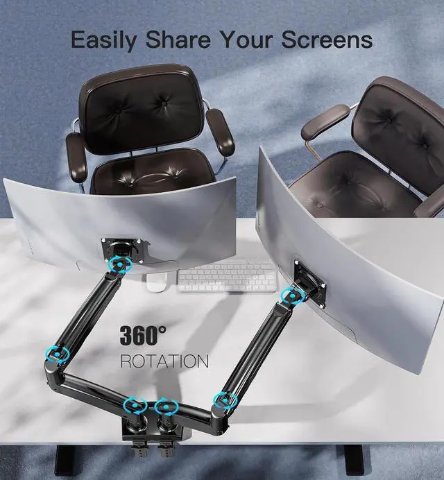 • Full Adjustable to Optimize Your View - This Monitor Stands for 2 Monitors allows your screens to swivel from -90° to +90°, tilt from -45° - +85° and rotate 360°. The dual