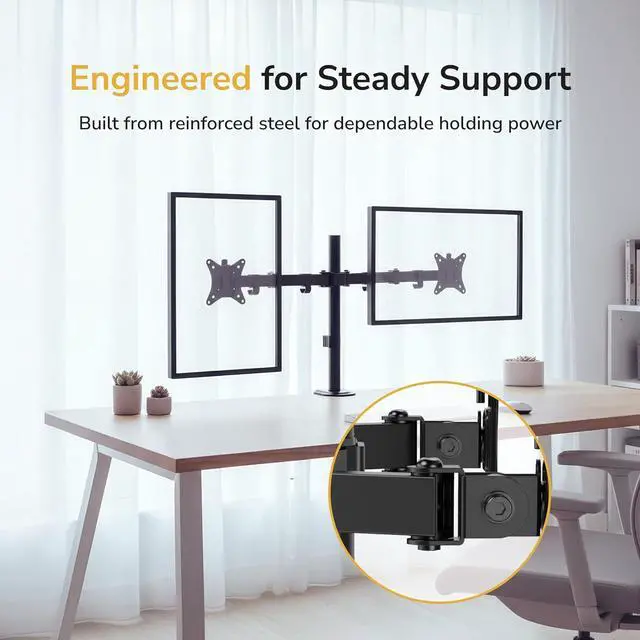 Built strong for daily use Heavy-duty steel construction provides stable, long-lasting support. Integrated cable clips keep wires neat for a polished, professional look.