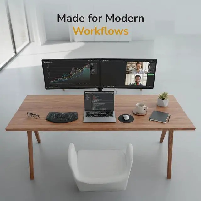 Maximize your workspace Raise two monitors off your desk to free up valuable space and create a cleaner, more organized workstation for home, office, or gaming setups.