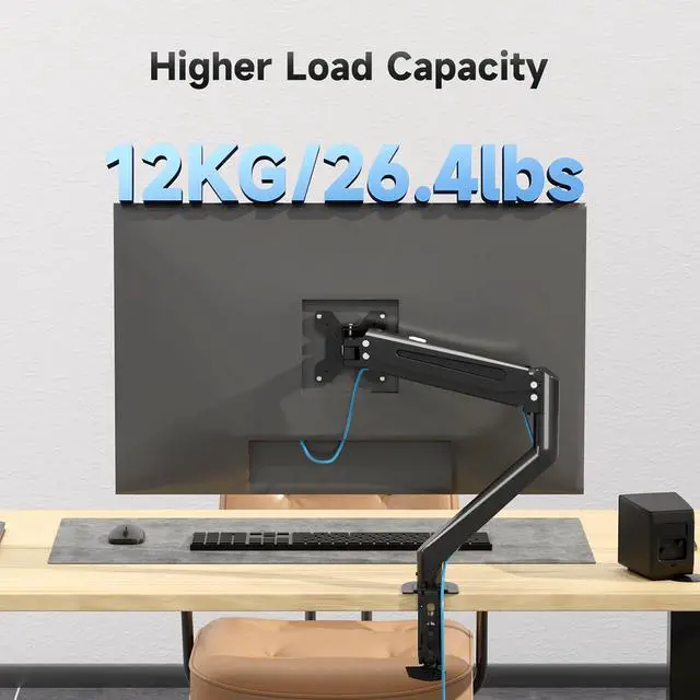 Compatibility: The Suptek single monitor arm mount is designed to fit most flat LCD/LED screens ranging from 13" to 34", max load capacity 26.4 lbs for flat screens, with standard Mounting Pattern mounting holes (75x75mm and 100x100mm)