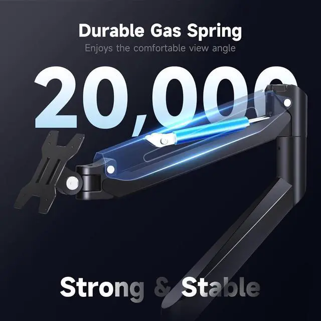 • Adjustable & Durable Mechanical Spring: Equipped with high-quality mechanical springs that have been tested over 20000 times, with stable performance, ensuring long-term support for your monitor. By adjusting the gas spring, the single monitor arm stand extends the screen 19.68 inches and raises the cantilever 21.25 inches above the desktop for optimal screen positioning and reduced neck, eye and back strain,saving desktop space and creating a more organi