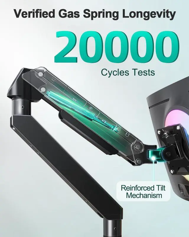 Impressive Stability & Durability - The reinforced tilt mechanism of this mount is updated for improved support to keep the screen from sagging. It has passed rigorous testing, including a 20, 000-cycle gas spring test, ensuring long-term stability & durability