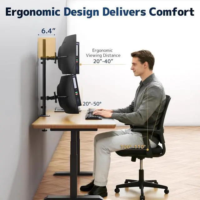 Space-Optimized Design: Vertical stacking reduces desk footprint compared to side-by-side arms, ideal for ultrawide displays in compact workspaces or professional environments