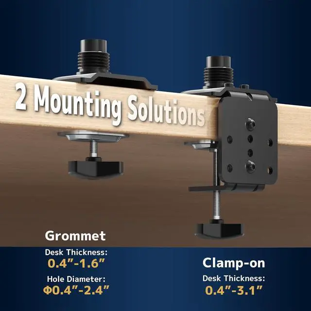 2-Way Mounting Flexibility: Heavy-duty C-clamp (fits desks up to 3.1 " thick) or optional grommet base ensures stable attachment, with steel construction for long-term durability