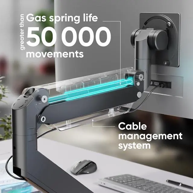 Easy Installation The single monitor arm desk mount includes all fasteners for popular PC-screen brands. Built-in cable management system of the computer monitor desk mount ensures a clean and organized desktop with hidden cables.