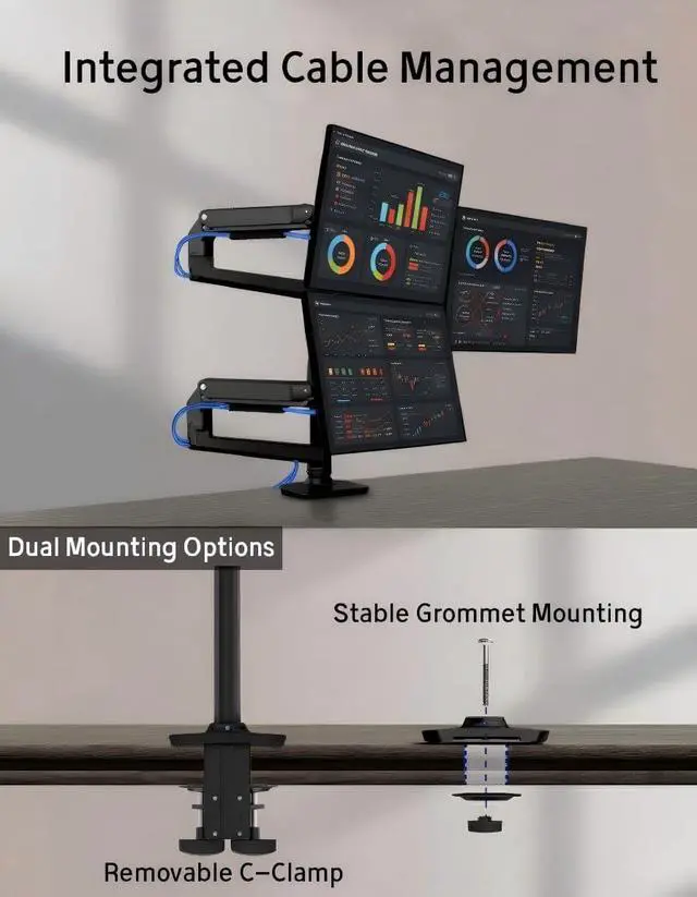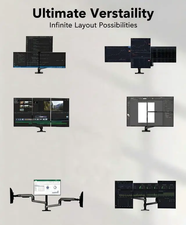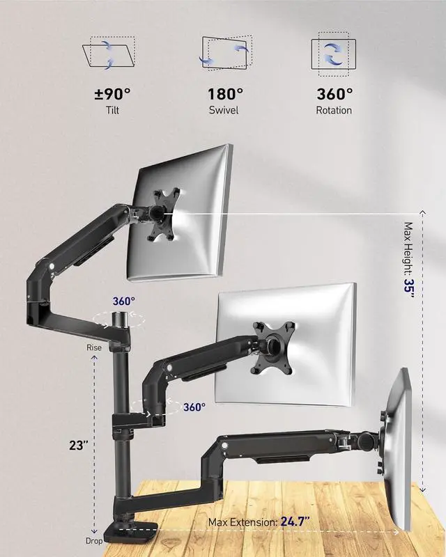 Benefit Ourself As an ergonomic desk monitor mount, it' s not only easy to install but also promotes our health and doubles our office efficiency by achieving the comfiest working position.