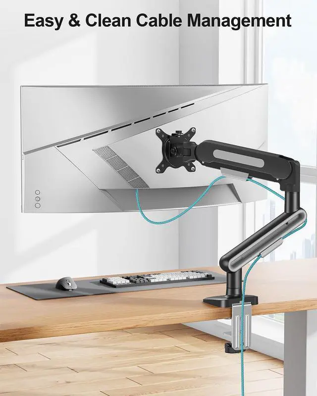 Free Up Your Desk Space-Upgrade your monitor to free up valuable desktop space, creating a clean, professional, and efficient workstation. The single monitor stand releases more than 80% desktop space compared to a monitor holder with large base. You can place office accessories freely. Built-in cable management keeps cords neatly organized for a clutter-free setup