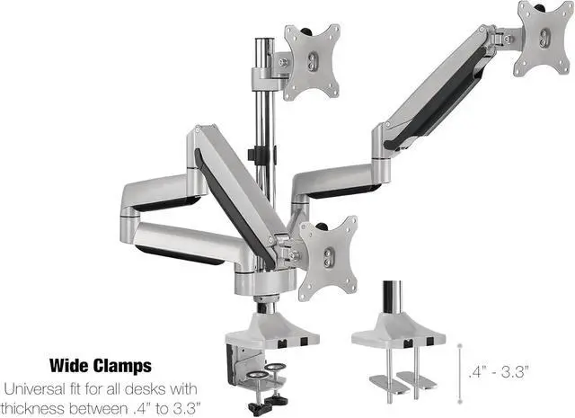 Universal Fit: Talk about the perfect size! The TechOrbits triple monitor desk mount is suitable for most 13in to 30in screens with 75mm x 75mm and 100mm x 100mm standard VESA mount patterns.