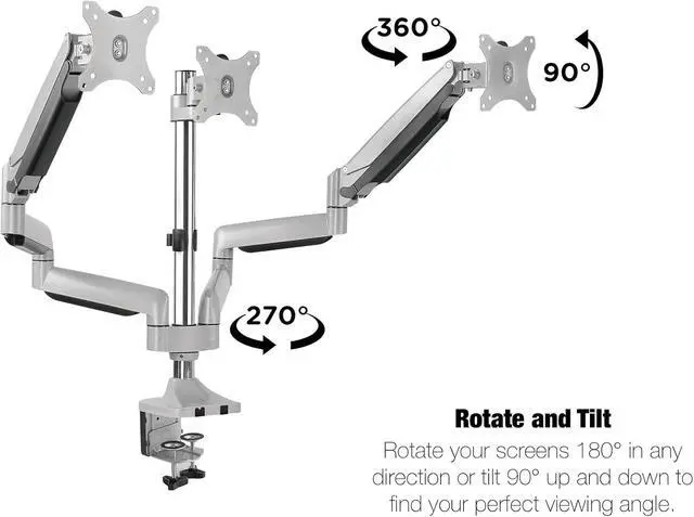 Full Range of Motion: Engineered with SmartSWIVEL technology, the 3 monitor arms on this computer monitor mount can easily be turned or tilted in all directions for optimal visibility and minimal glare.
