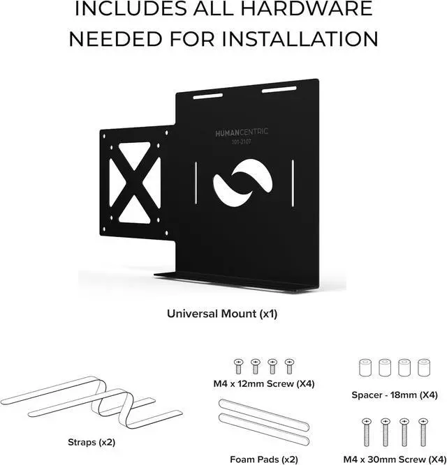 Free up desk space, improve cable management, and protect your device. Includes standard and long VESA screws, adhesive protective strips to prevent device scratches and spacers for mounting to monitors with inset VESA holes.