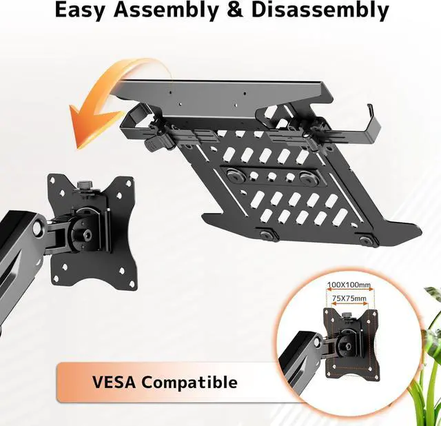 2-in-1 Multi-Function MountFits 10-17" " laptops (5kg max) & 17-40" " monitors (12kg max) with VESA 75x75/100x100mm compatibility. No included monitor screwsuse your own for screen mounting