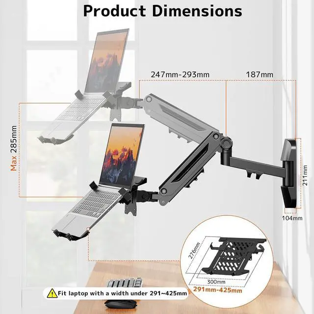 Space-Saving & Cable ManagementFree up desk space by mounting your laptop or monitor. Built-in cable clips keep wires organized for a clean workspace