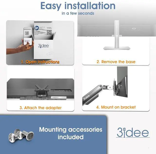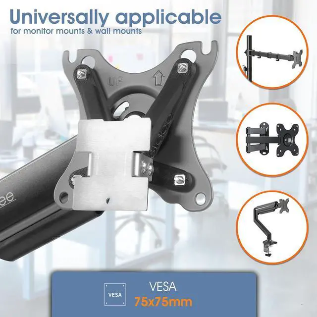 Attach your non-VESA monitor to a 75x75mm VESA monitor mount or wall mount: Easy installation the adapter replaces the mount and attaches to a monitor mount. A set of screws for mounting on the monitor arm is included.