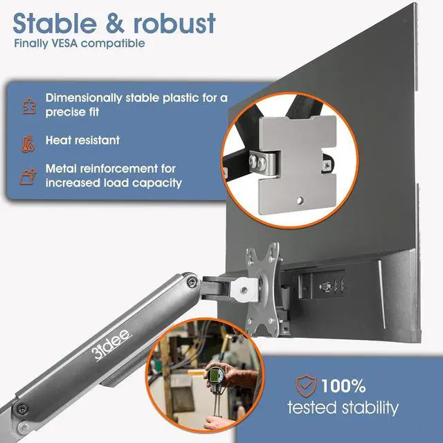 The VESA professionals: 3IDEE stands for expertise in VESA adapters, non-VESA adapters, VESA monitor mounts and other areas such as monitor mounts and ergonomic systems for monitors.
