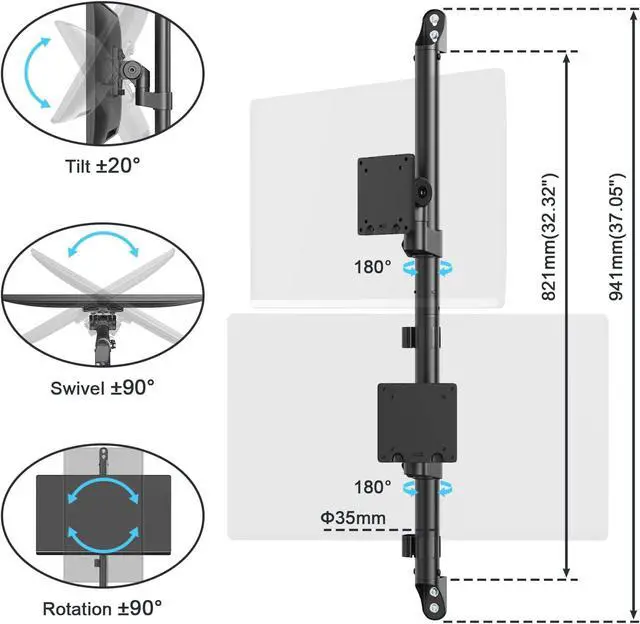 Full Motion Articulation: Features 180° swivel, 40° tilt, 180° rotation, reduce neck, shoulder, and back pain by positioning screens exactly where you need them.