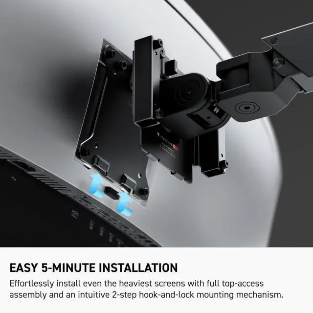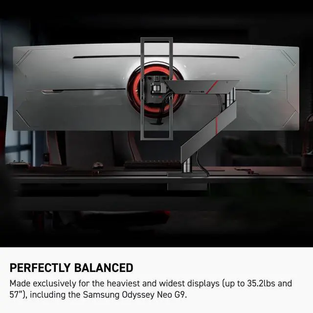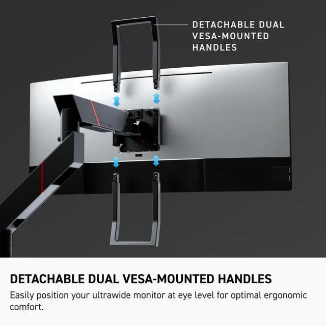 Made exclusively for ultrawide gaming monitors, including the Samsung Odyssey Neo G9 gaming monitor. Find the perfect position effortlessly. Adjust your screen with detachable dual vesa-mounted handles and a premium tensile spring mechanism that offers the full range of smooth, dynamic movement.