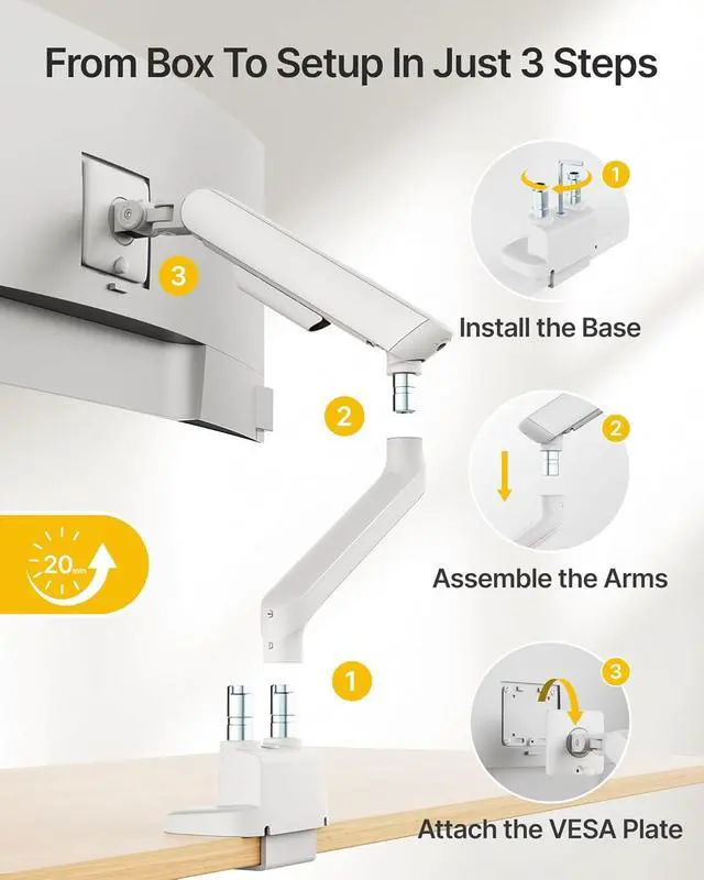FAST INSTALLATION & DEPENDABLE SUPPORT: Set up in minutes with the included C-clamp and grommet base, compatible with most desks. All hardware and step-by-step instructions are provided for a quick, hassle-free installation. And if you ever need help, our responsive customer service team is ready to assistjust reach out anytime.