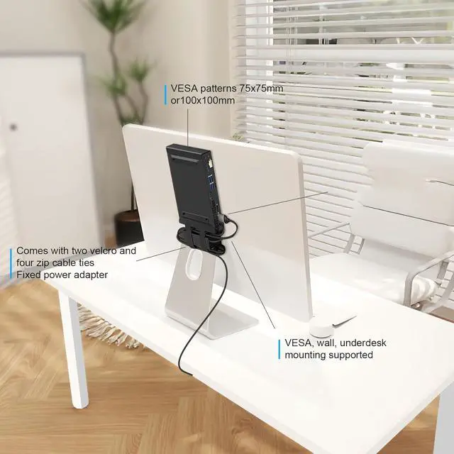 Power Adapter Mount: Includes two Velcro straps and two tie wraps to secure the For HP Mini power adapter under the mount. Helps keep your cables organized in any installation environment
