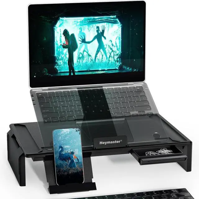 MULTIFUNCTIONAL DESK ORGANIZEREach monitor stand with drawer comes with 1 phone/tablet holder, 1 storage drawer and 2 pen slots, making it easy to keep your phone, tablet and office accessories at the ready, and you can also place your keyboard under this desktop monitor stand to help keep your workspace organized.