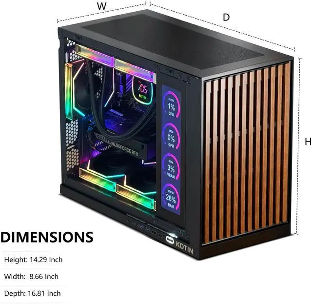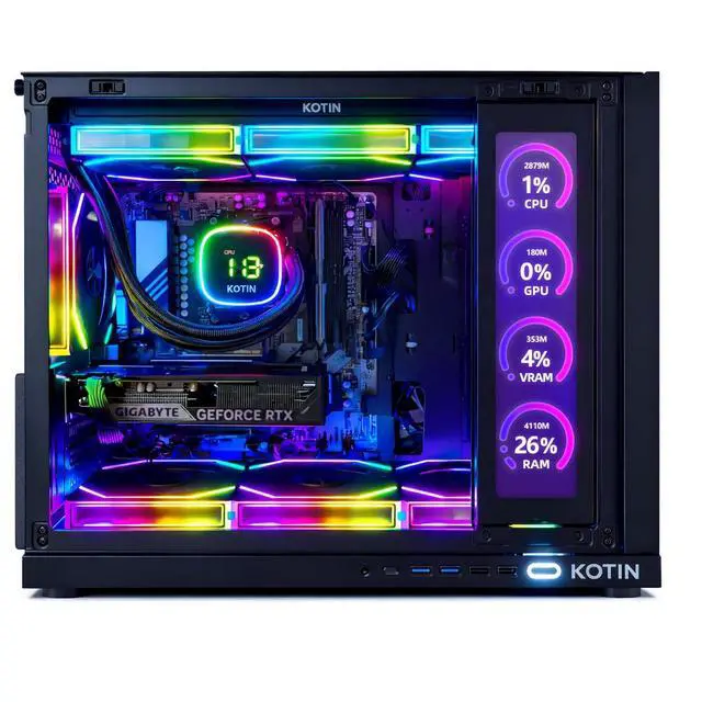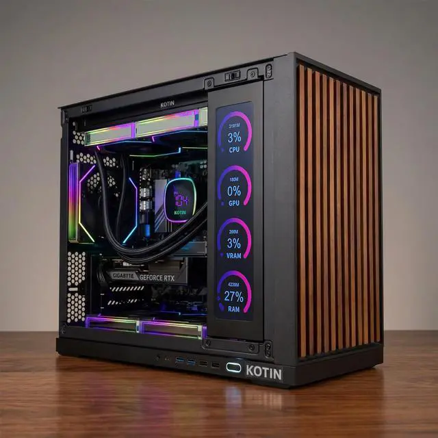 Advanced 360mm Liquid CoolingEquipped with a 360mm digital liquid cooler featuring a real-time temperature display in Fahrenheit (°F), combined with PWM-controlled fans for intelligent speed adjustment. Delivers efficient cooling, low noise, and stable performance under heavy workloads.