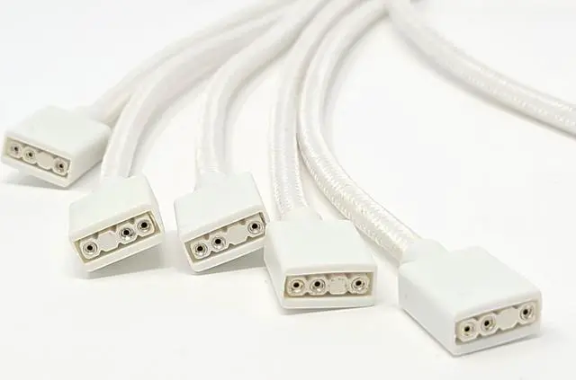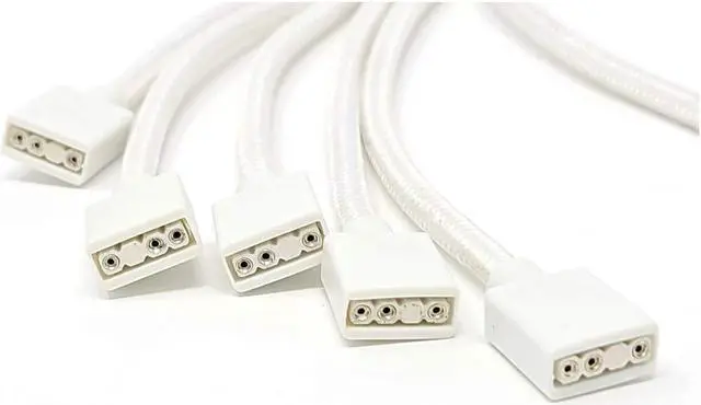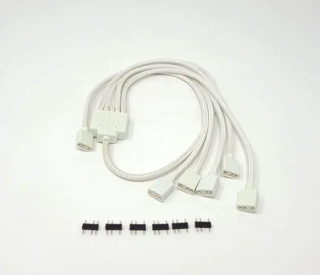 The Micro Connectors Addressable RGB 1 to 5 splitter cable is the perfect accessory which allows users to extend and connect their addressable RGB LED lighting strips or fans through a single motherboard 3-pin ARGB header. Made from a longer 70cm flexible premium weave sleeving, and with the added bonus of male pins included in each package, this RGB splitter cable is your best companion for your Addressable RGB lighting needs.